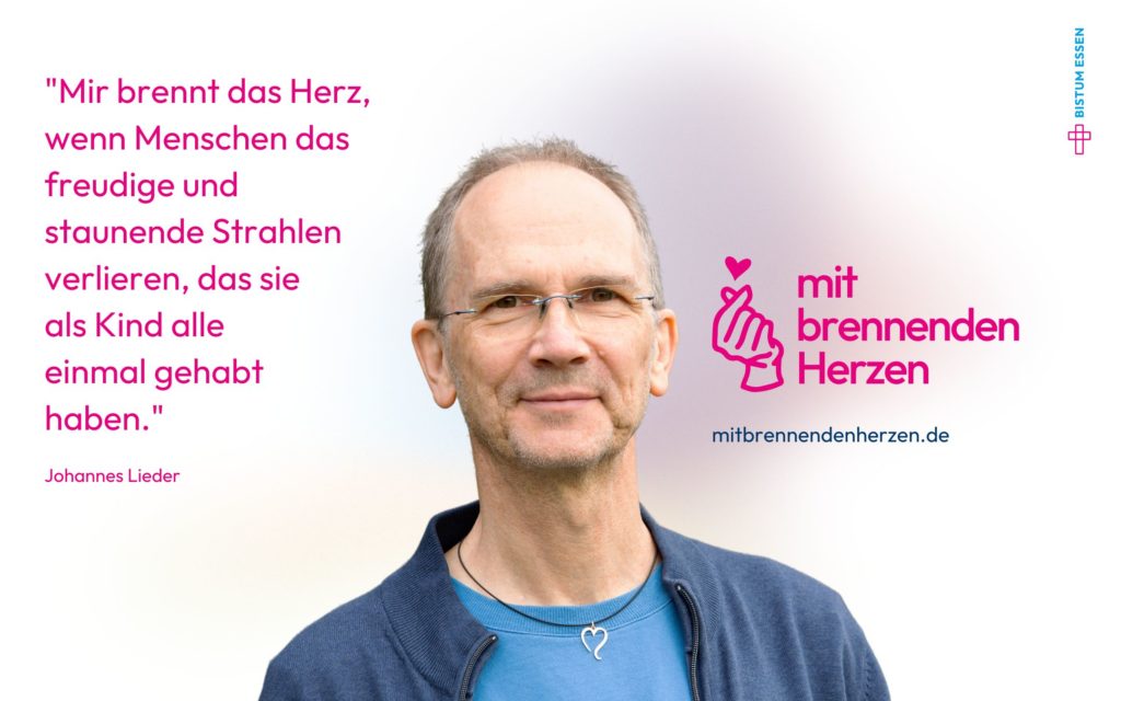 Als Motiv haben wir das Bild „mit brennenden Herzen“ gewählt. Zum einen ist in diesem Motiv die Enzyklika „Mit brennender Sorge“ aus dem Jahr 1937 hörbar, die die bedrängte Lage der römisch-katholischen Kirche im damaligen Deutschen Reich thematisiert und die Politik und Ideologie des Nationalsozialismus verurteilt. Zum anderen schwingt die bekannte Erzählung von den Emmaus-Jüngern mit: „Brannte nicht unser Herz in uns, als er auf dem Weg zu uns redete?“ (Lk 24,32). Unsere „brennenden Herzen“ vereinen beide Dynamiken: Die Ungerechtigkeiten unserer Zeit deutlich zu spüren und die Auferstehungs- und Hoffnungsbotschaft an Ostern mit brennenden Herzen im Empfang zu nehmen.